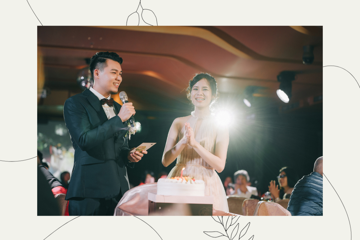 但可以的話,希望新人可以安排一點點時間與每位親友都打招呼、好好說上幾句話,我有看過有新人拿自拍棒每桌自拍、或是進場後四處走動打招呼聊天,這些都是很重要的!